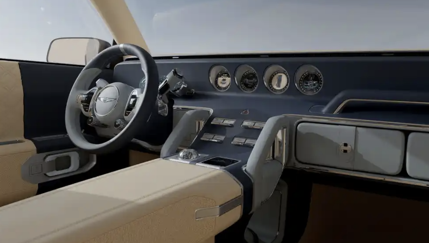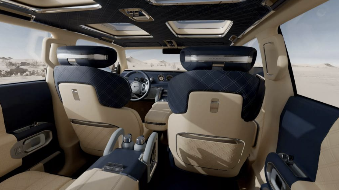 该车还装备24英寸防脱圈轮圈。捷尼赛思X Gran Equator概念车几许风格的辅佐灯与对开式尾门,相同照应了捷尼赛思标志性的双线头灯规划。