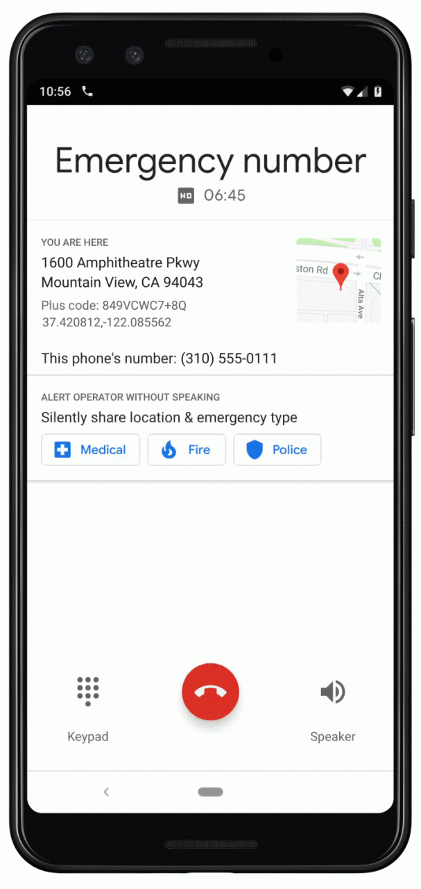 了一项新功用,该功用将为 Pixel 手机和其他 Android 设备供给无语音紧迫呼叫服务。这个功用专为受伤和说话或许带来风险的状况以及有语言障碍的用户规划,呼叫者能够经过菜单选项来进行通讯。用户能够经过点击“火灾”,“医疗”或“差人”发动紧迫呼叫,信息会被传送给紧迫状况接待员而无需呼叫者说话,体系会从手机的 GPS 中获取呼叫者的方位信息,并运用 plus 代码——一种在没有特定地址的状况下定位呼叫者的办法。
