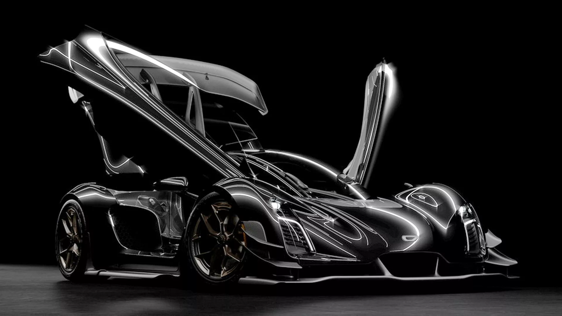 首要,正如人们或许猜到的那样,油漆是深黑色的。车轮选用 SR-71 自上而下的概括作为辐条。排气管的形状看起来更像真实的加力燃烧室,甚至在 1+1 驾驶舱中还隐藏着一点“加力橙色”。作为以航空主题为主题的超级跑车,这款车获得了一切高分。